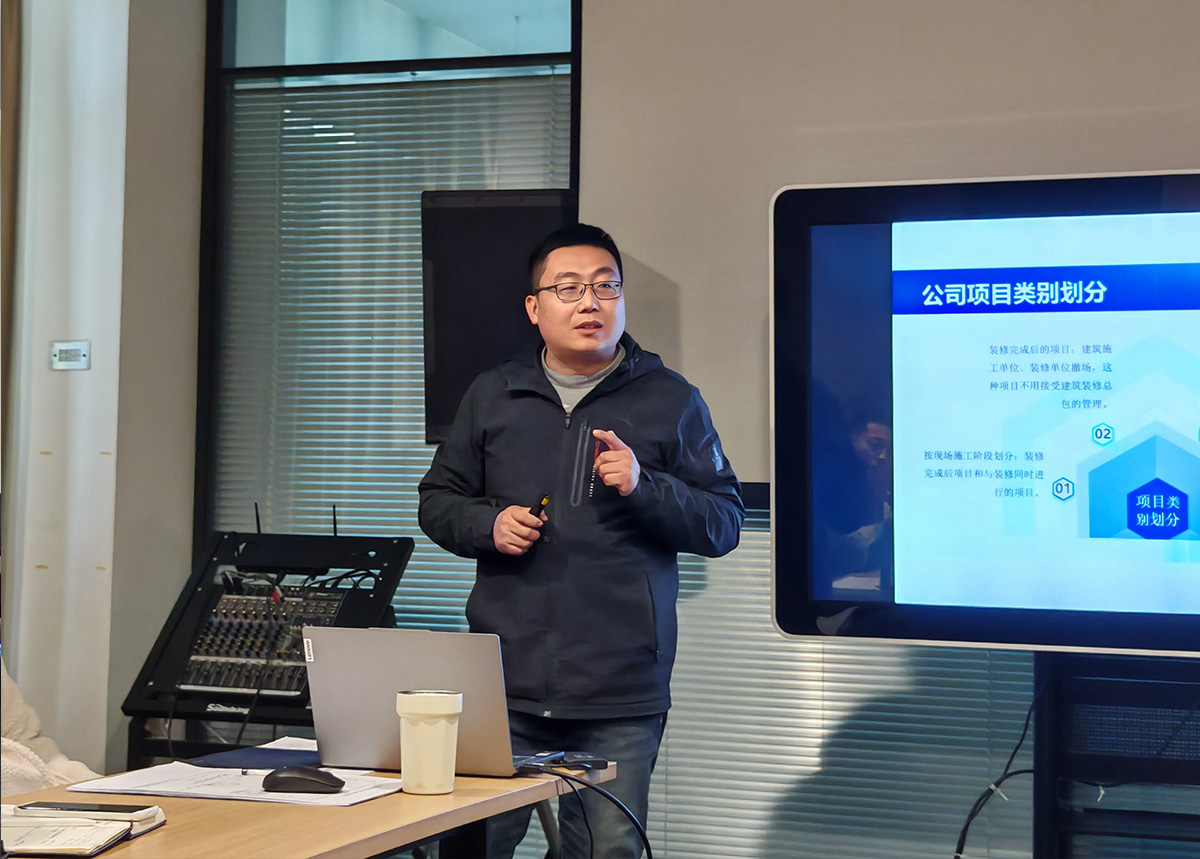 为帮助全体同事系统掌握家具工程项目核心运作逻辑,提升项目执行效率与质量管控能力,1月3日,公司在培训室组织了“怎么干好一个家具工程项目(上)”专题培训,本次培训由公司售后经理邹瑞法主讲,全体同事齐聚一堂,共同解锁项目管理的关键密码。